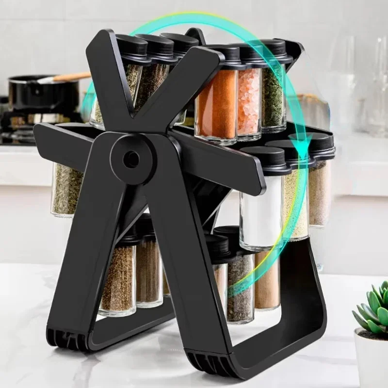 Rotating Storage Rack Rotating Glass Spice Rack Set Kitchen Storage Rack Spice Storage Rack Seasoning Storage Rack glass jars